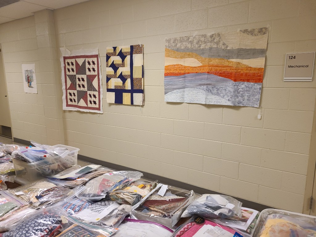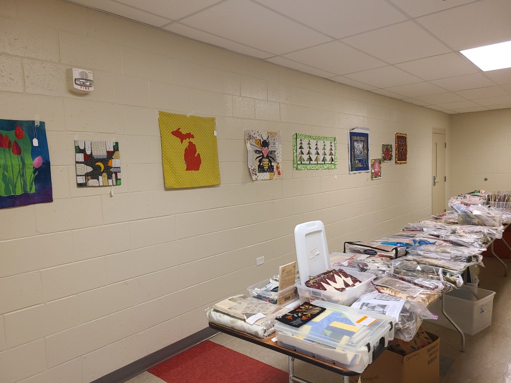 Upcoming Programs and a nice display of community outreach quilts. We allocate a substantial part of our budget to make and donate quilts to local organizations, including the Lakeshore Pregnancy Center, the Ottawa County health department, Habitat for Humanity and the North Ottawa Breast Cancer Center.