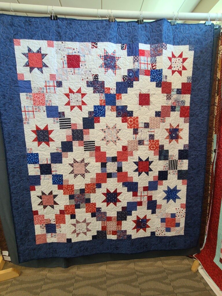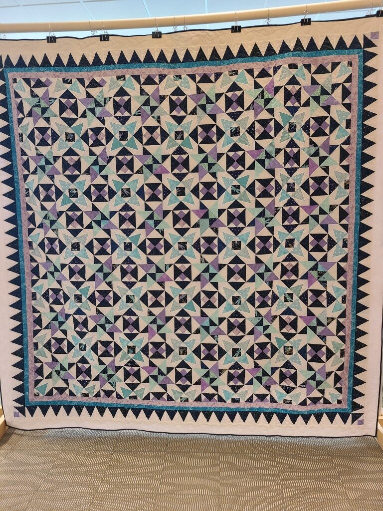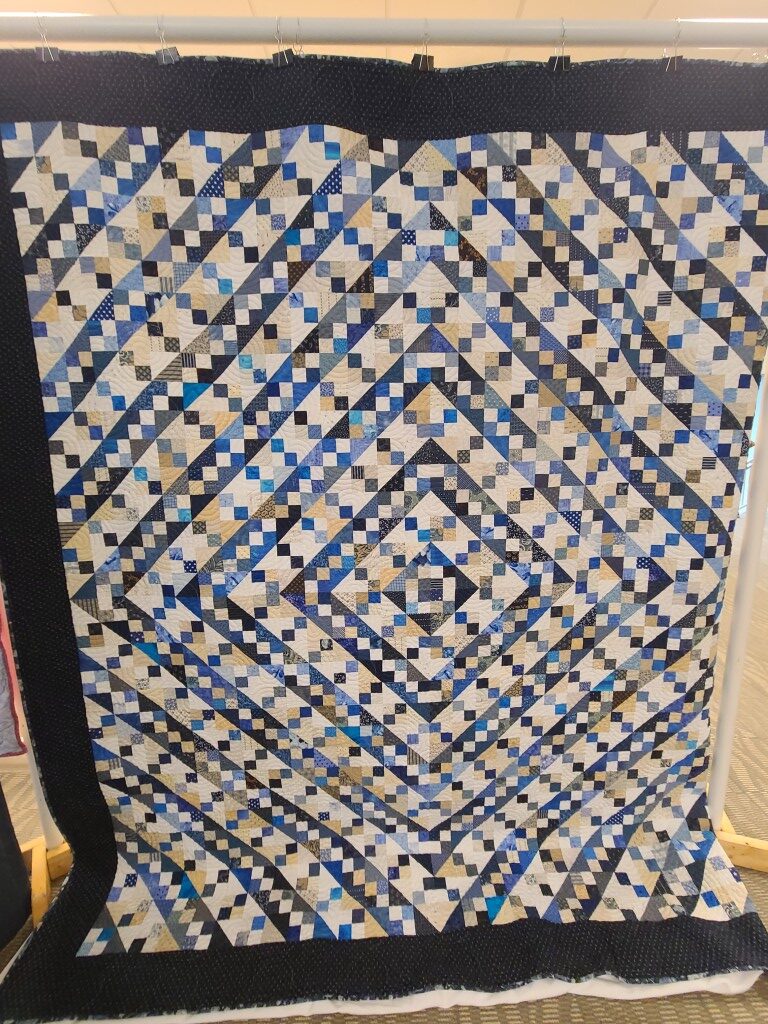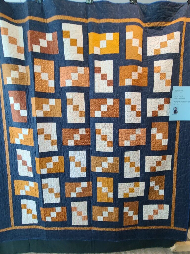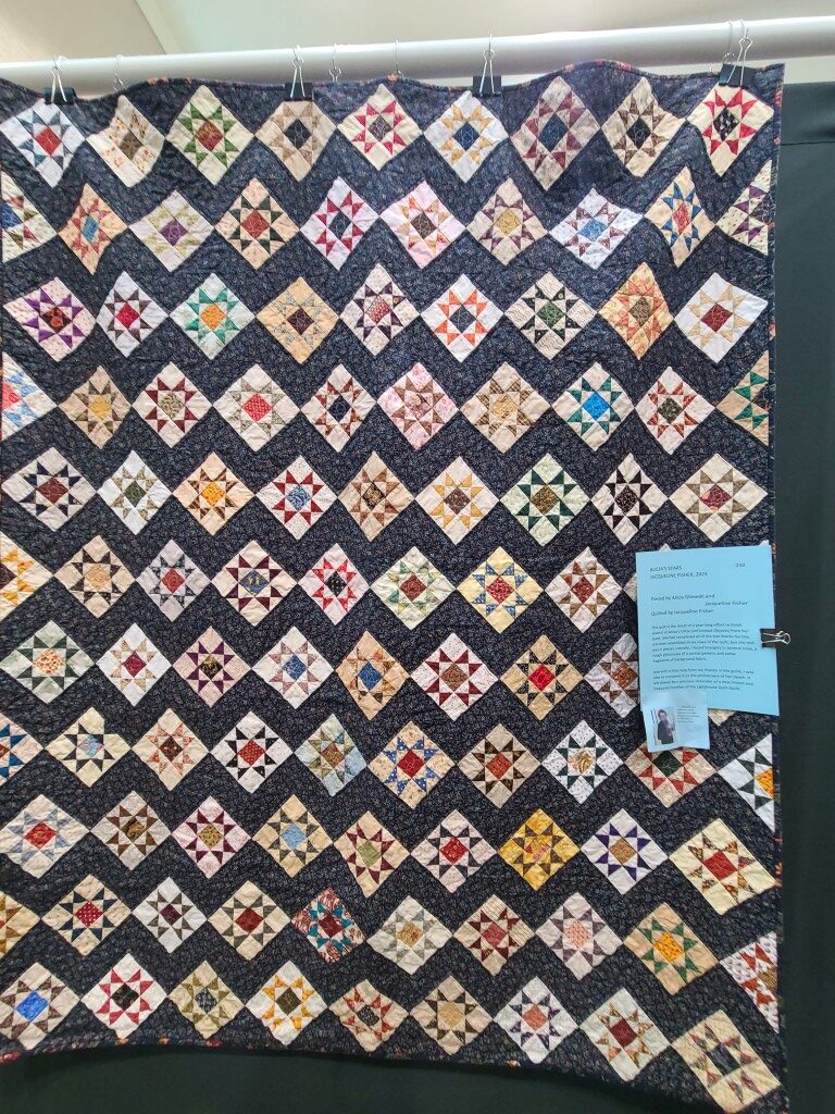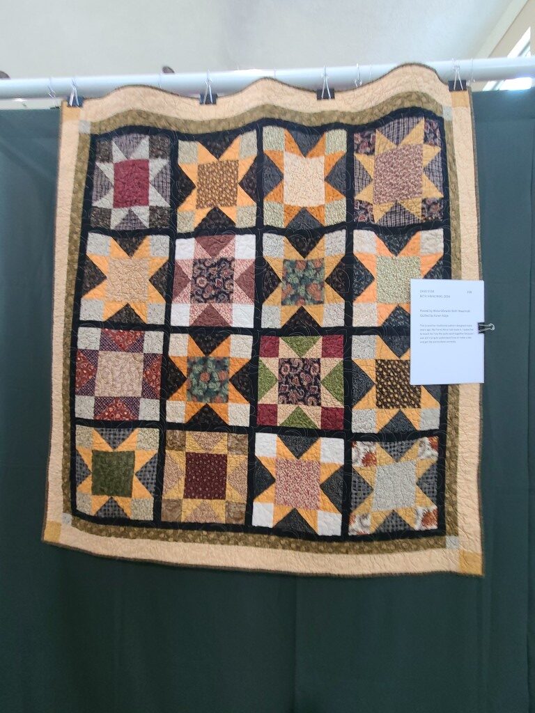 We honored our fellow guild member and friend, Alicia Gilewski, who passed away in July of 2023 following a short illness. Alicia was co-chair of our Quilt Show, with Jackie Fisher, in 2022 and 2023. Her wish, expressed to her family, was that all of her quilting supplies be offered for sale to guild members and the proceeds of the sale donated to our Lighthouse Quilt Guild. A number of guild members used the fabrics, patterns, kits, tools they purchased to make original quilted items while others tackled one of Alicia’s partially finished project and finished that. Their creations (11 in total) were on display in this year’s show.
