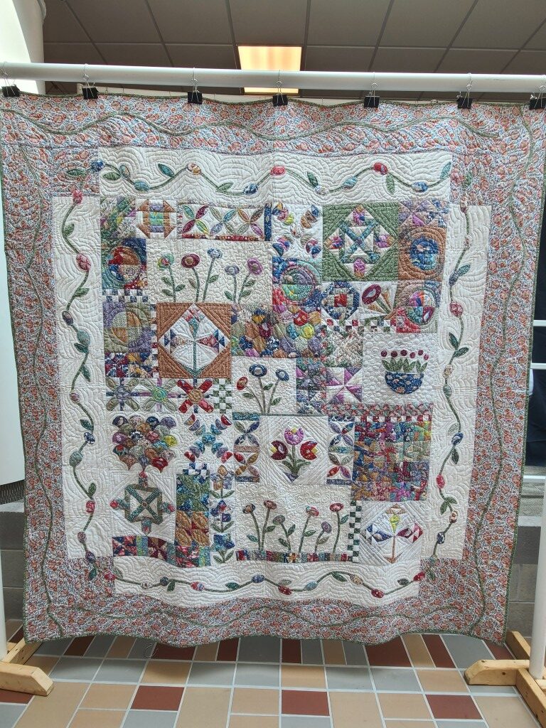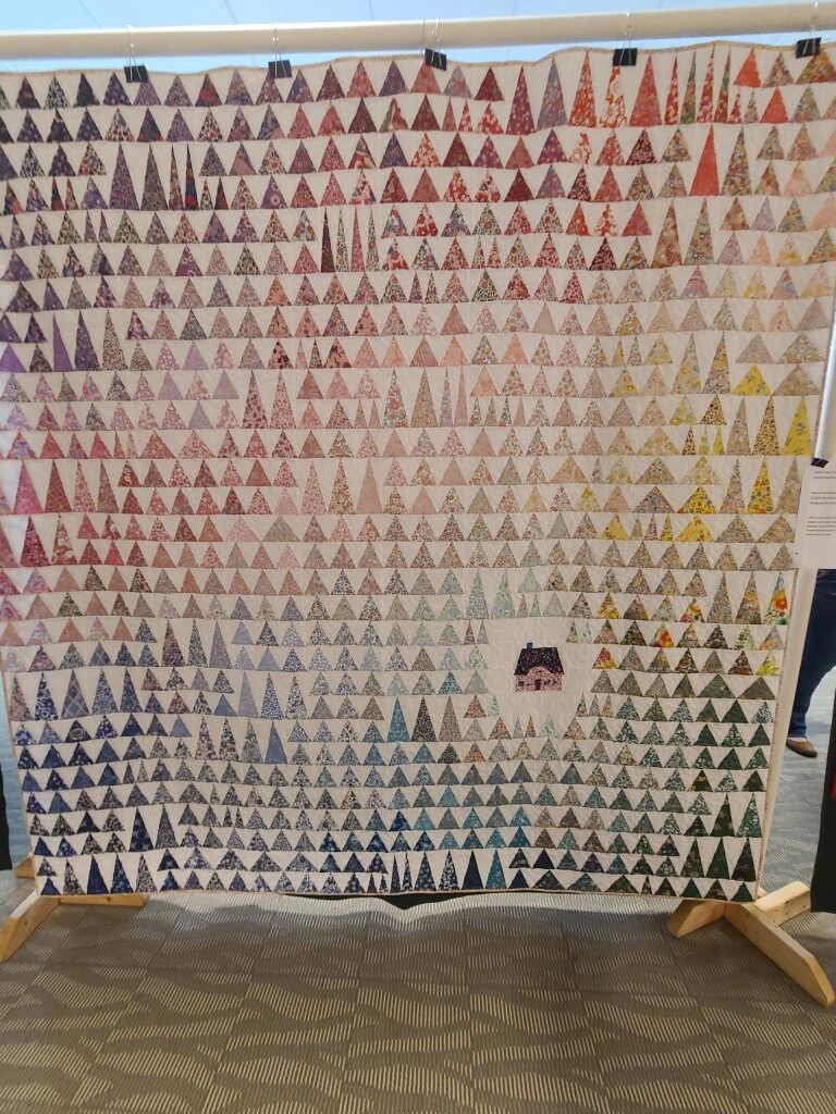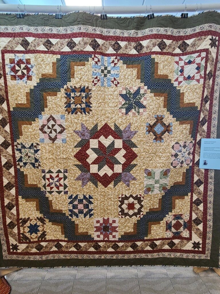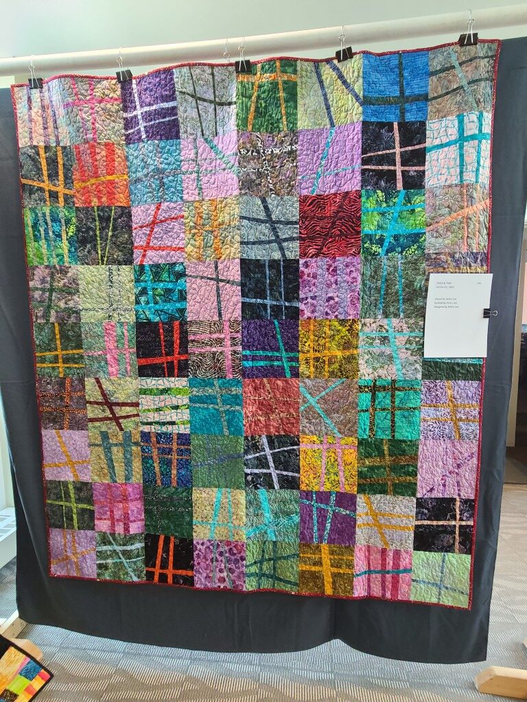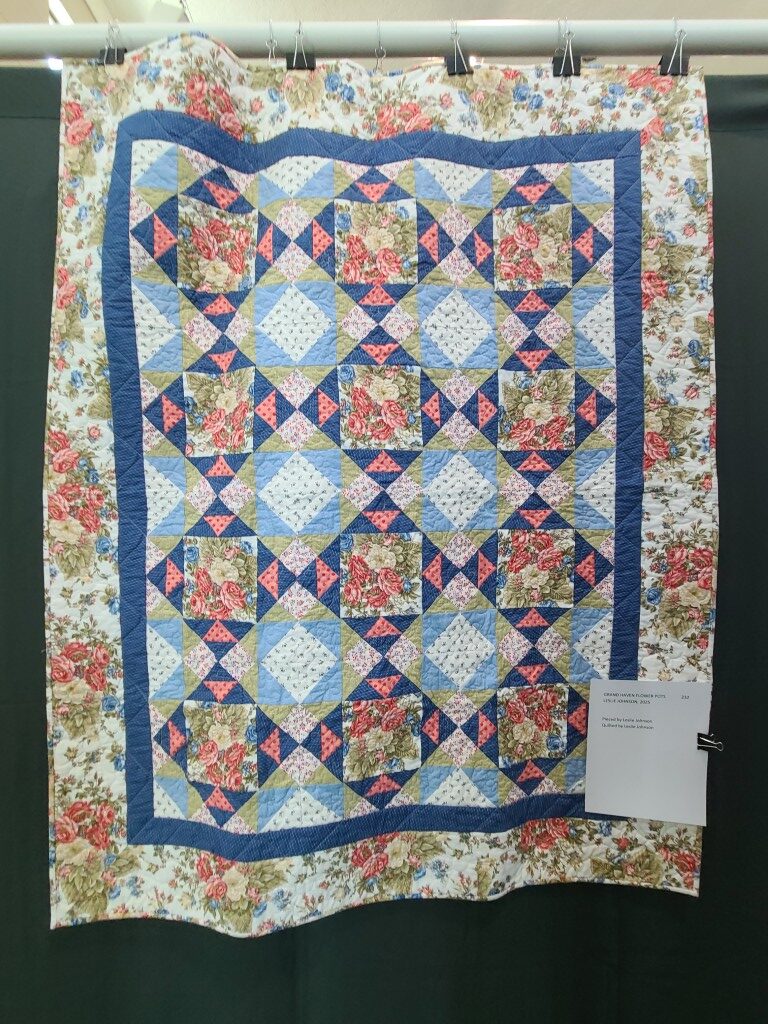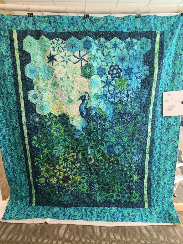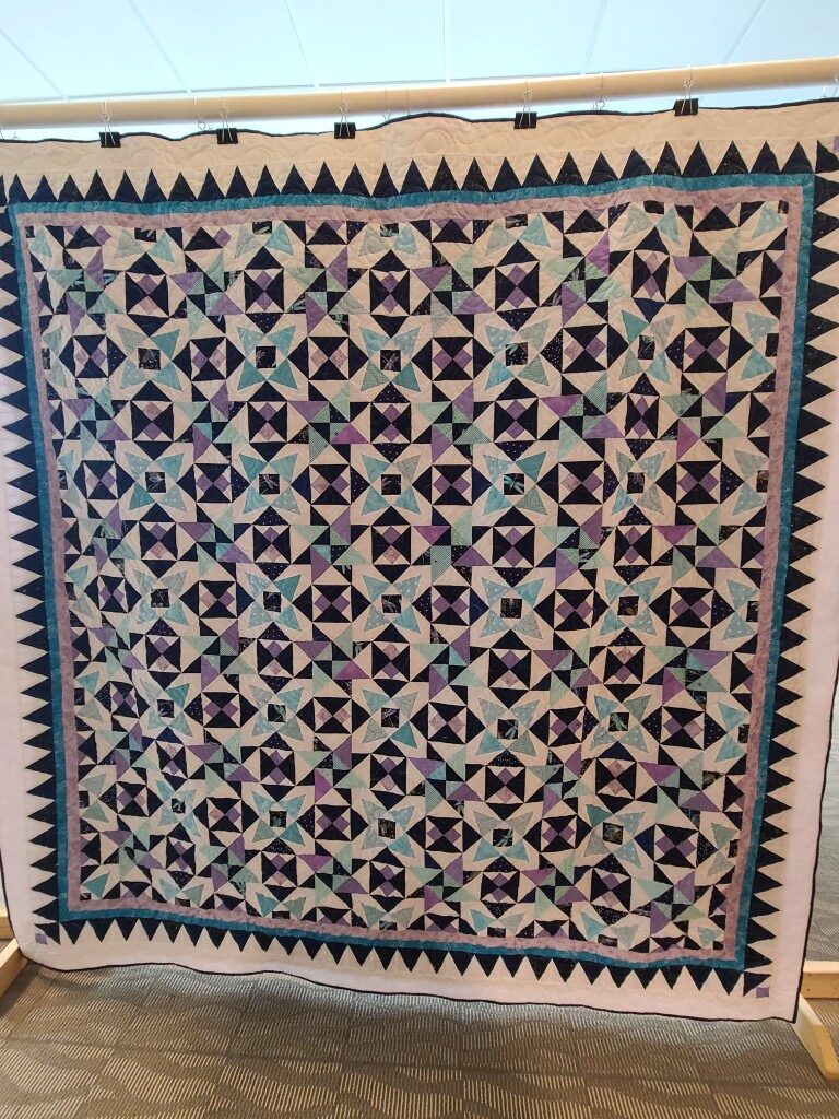 We honored our fellow guild member and friend, Alicia Gilewski, who passed away in July of 2023 following a short illness. Alicia was co-chair of our Quilt Show, with Jackie Fisher, in 2022 and 2023. Her wish, expressed to her family, was that all of her quilting supplies be offered for sale to guild members and the proceeds of the sale donated to our Lighthouse Quilt Guild. A number of guild members used the fabrics, patterns, kits, tools they purchased to make original quilted items while others tackled one of Alicia’s partially finished project and finished that. Their creations (11 in total) were on display in this year’s show.