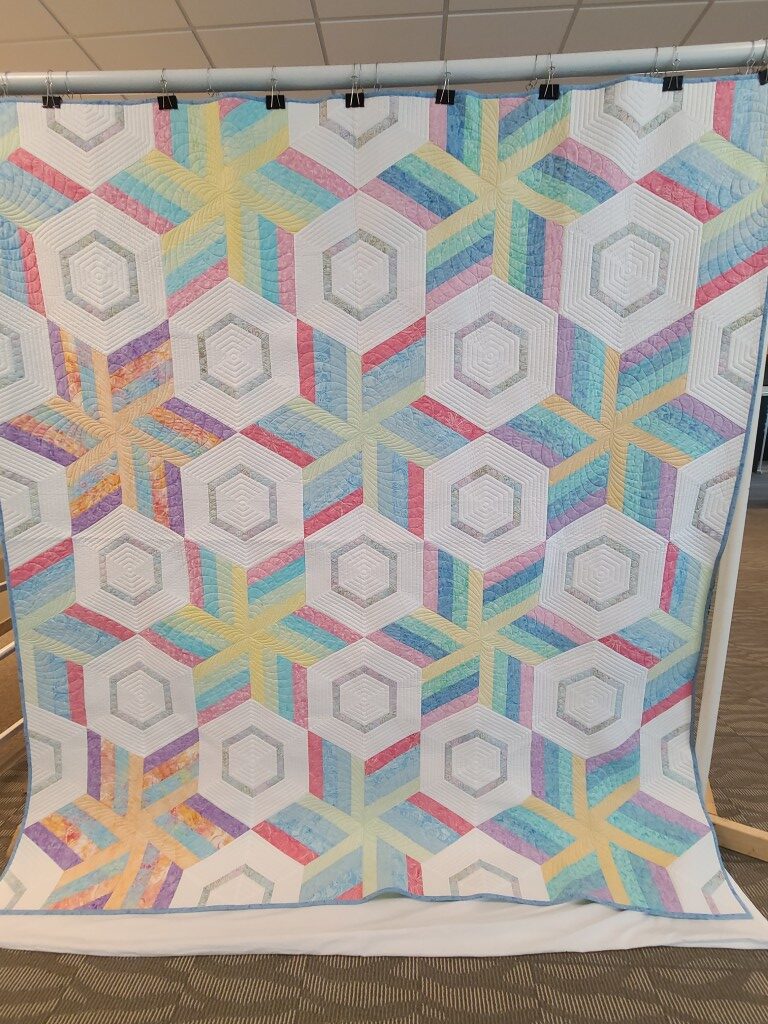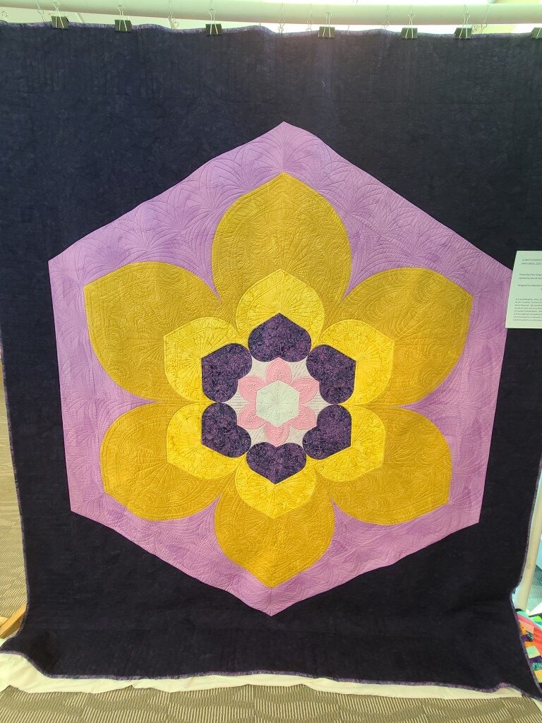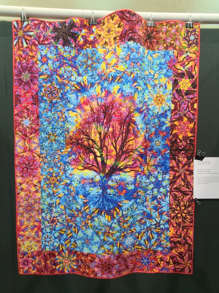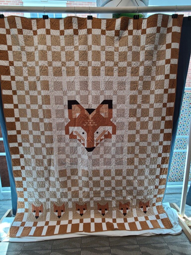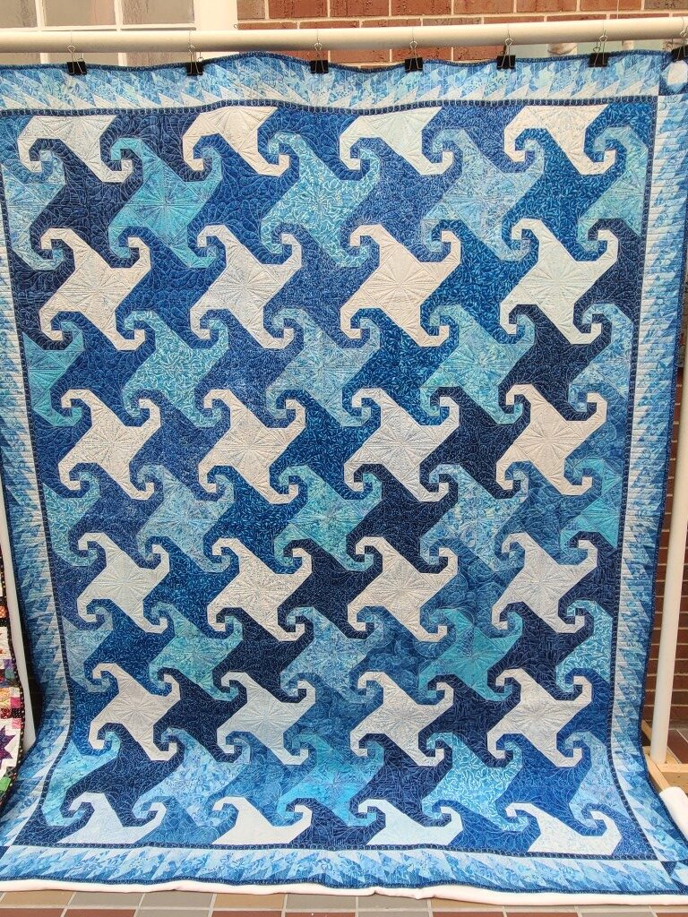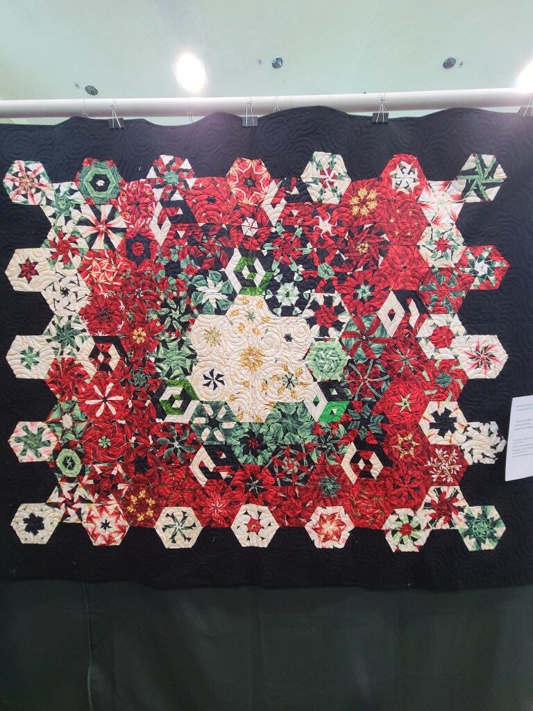 We honored our fellow guild member and friend, Alicia Gilewski, who passed away in July of 2023 following a short illness. Alicia was co-chair of our Quilt Show, with Jackie Fisher, in 2022 and 2023. Her wish, expressed to her family, was that all of her quilting supplies be offered for sale to guild members and the proceeds of the sale donated to our Lighthouse Quilt Guild. A number of guild members used the fabrics, patterns, kits, tools they purchased to make original quilted items while others tackled one of Alicia’s partially finished project and finished that. Their creations (11 in total) were on display in this year’s show.