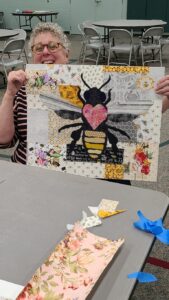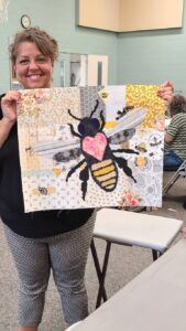 2022, July 11 Valina James Bee Class / Show and Tell, Speaker, Uncategorized, Workshop / By admin Laura Heine Technique and Patterns Click on a picture to enlarge it. Link to Patterns Lecture and Samples all made by Valina show and tell Quite proud of out accomplishments. Thanks Valina, (back row 2nd from left)